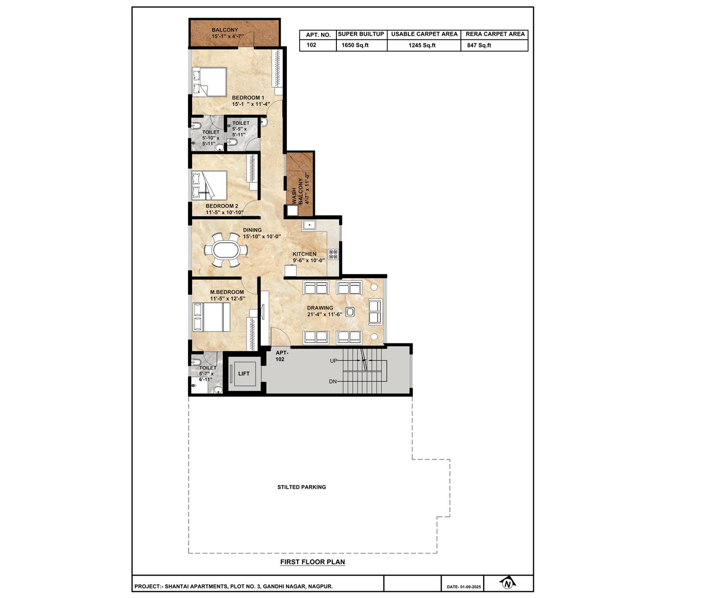 Shantai Apartment by Raghukul stands as a perfect combination of superior construction, elegant interiors, modern technology, and eco-friendly systems. This project comprises 14 luxurious four-bedroom apartments, offering sizes of flat 201-701- 1,650 sq. ft. (super builtup), 1,245 sq. ft. (UCA) and 847 sq. ft.(RCA). Flat 202-7012-1,425 sq. ft. (super builtup), 1,035 sq. ft. (UCA) and 759 sq. ft.(RCA). Every element—from robust RCC framing, premium tiling, high-end fittings, advanced electrical infrastructure, to world-class security and sustainability features—has been carefully selected to deliver unmatched quality and comfort.